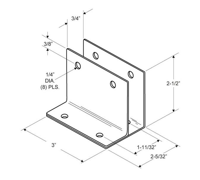 Partition Hardware Stainless Steel Wall Bracket 1 EAR SAT 3/4″X3″