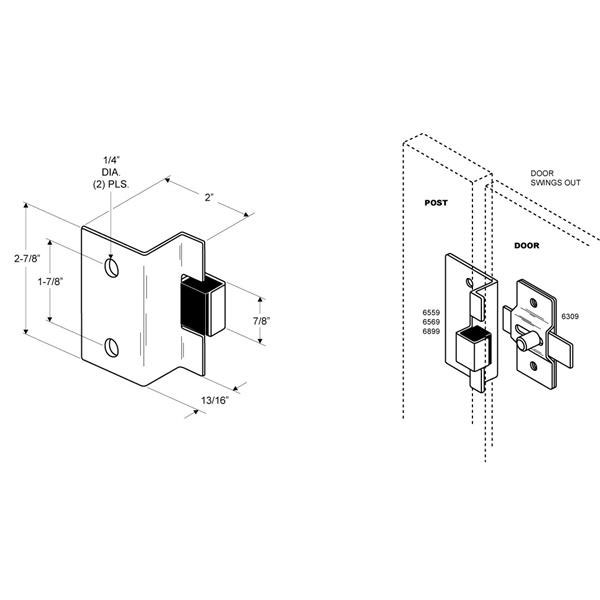 Partition Hardware Stainless Steel Striker & Keeper Out-Swing 2″X2-7/8″X3/4″